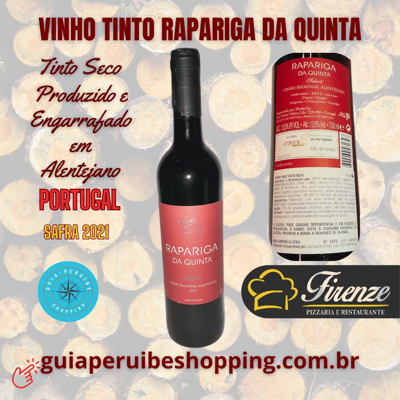 Em Peruíbe a Pizzaria e Restaurante Firenze, tem em sua adega, o vinho tinto de mesa português Rapariga da Quinta Select tinto seco Português é um vinho regional Alentejano. Vinho Tinto frutado com notas de especiarias, harmonioso, intenso e macio em boca. O Rapariga da Quinta Select resulta de um corte de uvas, que pode variar de safra para safra. É um vinho jovem, cheio de fruta. Sem passagem por barrica, é leve, macio e equilibrado.