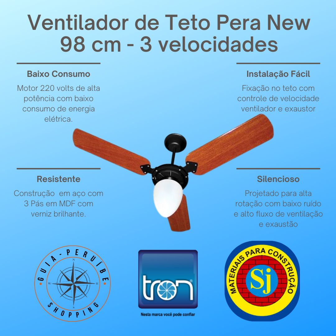 O ventilador e exaustor de Teto Pera New preto 220v Tron 96 cm possui lustre para uma lâmpada e tamanho ideal para oferecer muita Ventilação ou exaustão. Além de ter um visual bem moderno e muitas outras qualidade, ele é muito fácil de montar e desmontar para limpar. O ventilador da Tron possui um motor muito potente de 130W com muita força e com excelente eficiência energética, o que resulta em um produto forte e econômico.Construido em Aço carbono e MDF envernizado de alta resistência, leve e muito prático para limpar.
